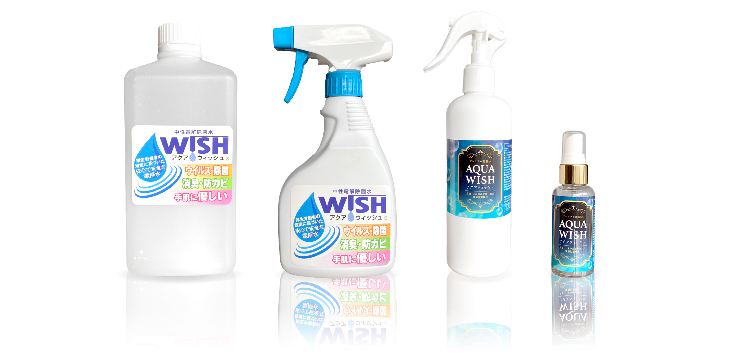 手肌に優しく、お子様から大人まで幅広くご利用いただける除菌剤「アクアウィッシュ」。
